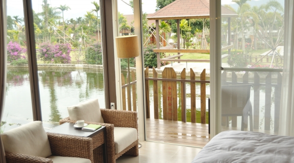 坐落於水岸邊的景觀房,採大面積落地窗設計,讓你躺在床上就能一覽無垠的遠山近水,或坐在陽台放空發呆,也是種奢侈的享受啊!