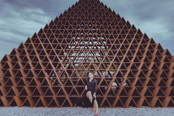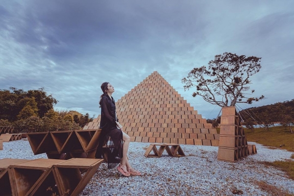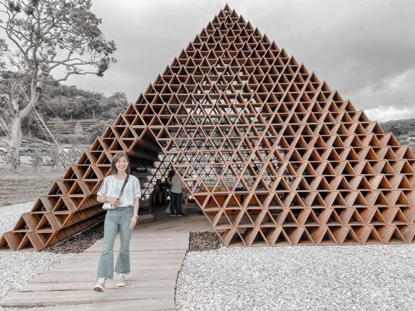 進入園區後,最吸睛的就是「台開積木館概念館」,巨大壯觀的積木金字塔,出自日本建築大師隈研吾之手,以1472個積木組成,曾在2018年世界花卉博覽會展出過,後來直接整座搬到雲夢山丘供人參觀。館內擺放著未來園區的建築物模型,可以從中一窺未來園區的全貌。