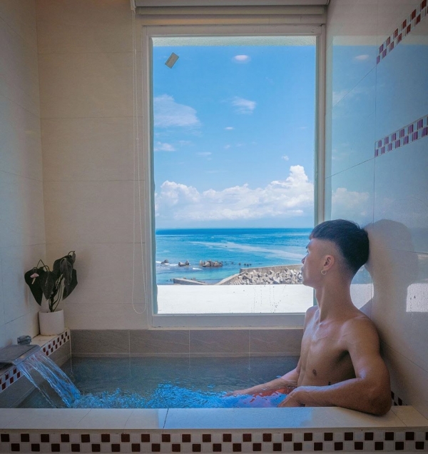 夜宿漁村可以近距離的和海水接觸,只要下一個樓梯的距離,你就可以優閒遊泳、浮潛、悠遊潮間帶,除了擁有7間海景景觀房,其中五間擁有海景浴缸,可以讓您邊泡澡邊觀海消除一天的疲勞。
