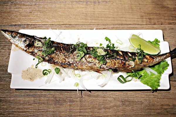 長長的秋刀魚 外型細長如刀一般 魚料理烤功不錯 魚肉口感結實 油脂香氣有出來,擠上幾滴檸檬增添清香 沾上胡椒鹽 就很有味兒 細刺不少吃的時候要注意 。