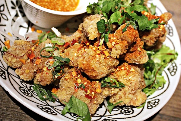 椒麻雞 炸雞外酥內嫩保有肉汁 撒上紅紅辣椒粉和鮮綠香菜 味道視覺都很棒別忘了沾上泰式風味的酸甜醬料 吃起來味蕾更加豐富有層次感 價格差不多的定格炸雞升級版 不來一份怎麼行?