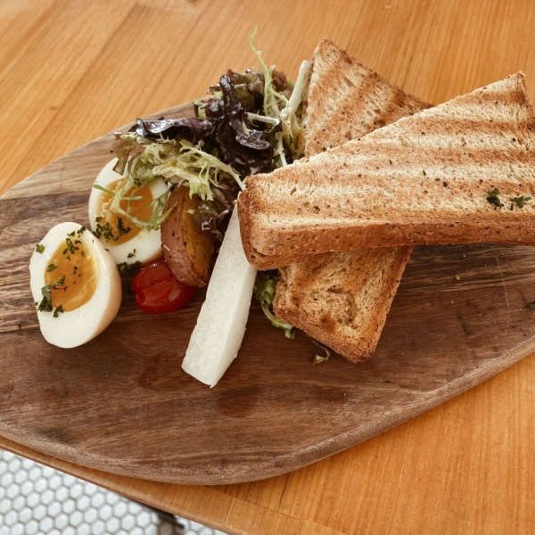 民宿有提供早餐,就在隔壁的草地餐桌實驗享用,一格一格的小窗都可以看到絕美的海景!餐點也很豐富又精緻!