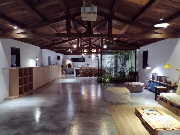 雖然為60年歷史的老屋古厝,看起來卻非常有質感,整間空間非常寬敞,大廳、餐廳、公共空間,整片的落地景窗,一覽戶外綠意美景,還有窯烤pizza的火爐,甚至不時有可愛的小動物來陪伴你!
