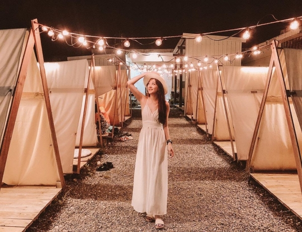以帳篷搭建而成的特色酒吧,不只賣調酒,也有輕食點心、飲料可以點,座位區上空一串串的燈飾,讓整個氛圍變得更桑、更有情調,來綠島度假絕對要喝一杯啊!