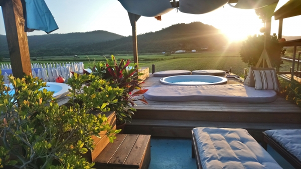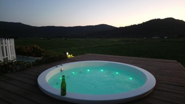 到了傍晚時分,泡澡池還會開啟浪漫的泳池燈,許多人會拿著啤酒來這邊欣賞夕陽西下美景,享受屬於自己的度假時光!