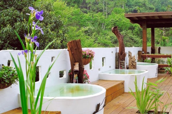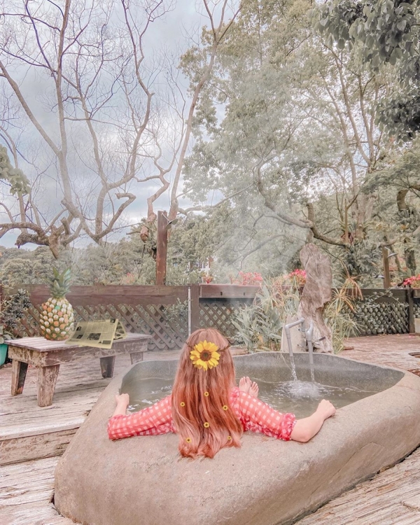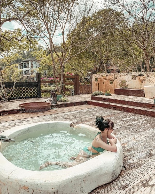 這個原石打造的特色湯池,也就是俗稱的「美人湯」,讓你在樹蔭下花叢邊,享受被大自然包圍著,輕鬆自在地泡在湯泉裡!
