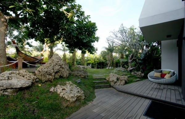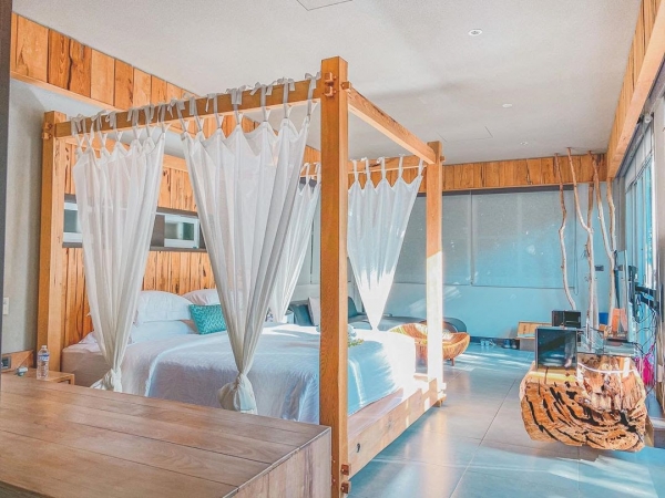 獨棟23坪室內空間,獨享室外300坪花園景緻,開放式客房概念。戶外露台躺椅還有吊床任意使用,半開放衛浴浪漫又享受~