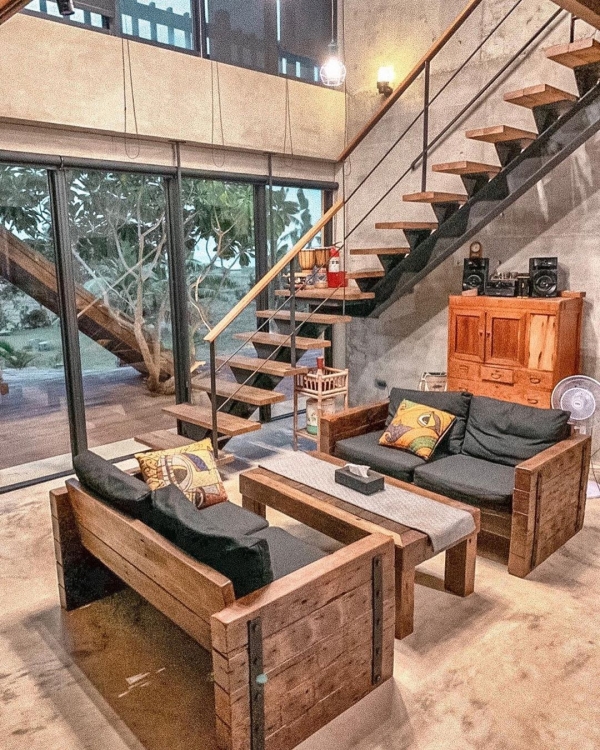 建築採高挑空間設計,搭配這工業風的電燈裝飾,獨特又很有氣氛,閣樓還有休憩區可以放鬆,提供可愛的座椅和懶骨頭,可以看書喝茶聊天的小空間!
