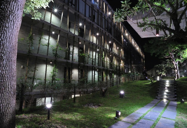 除了室內之外,戶外也能享受泡湯!鏡面溢水泳池倒映著燈光及大自然山水景觀,岩石、樹木、水幕、水瀑、燈光、火把,豐富了湯區的視線!