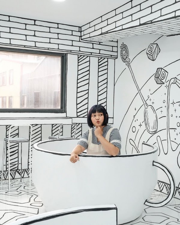 近期很夯的「2D Taiwan」咖啡廳也出現在台中啦!以遊樂園為主題打造設計,黑白漫畫風格裝潢讓人一秒走進2D世界,店內還有許多立體造景,像是旋轉木馬、咖啡杯、泡泡球浴缸及馬戲團畫面等等,怎麼拍怎麼好看!