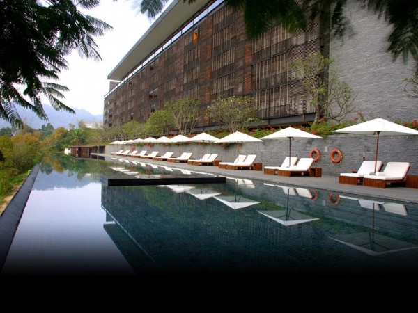 斥資新台幣18.6億元打造的「涵碧樓」,以極簡及禪風為建築設計的核心!將原有宮殿式的六層樓建築,僅留下樑、柱、樓板,其餘皆拆除改裝!便蓋了三個館,A館為客房、B館為SPA等休閒設施,C館則是別墅區、會議室、圖書館、停車場!