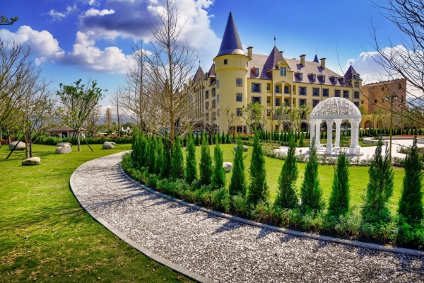 整個度假村包含城堡區、莊園區兩棟飯店建築!有親子別墅及格蘭別墅,是全台唯一結合溫泉水療合水上樂園的「黃金水樂園」,大部分的房間也都有溫泉設備,除了這些還有很多種休閒設施、餐廳、宴會廳、健身房!小朋友還可以在室內賽車!房間內就有溜滑梯!超適合親子來入住,小孩歡樂遊玩爸媽安心休息!