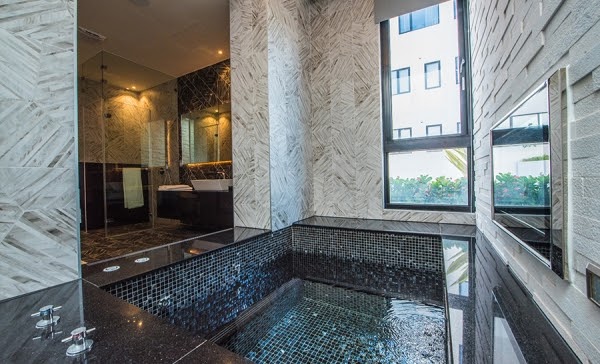 房內的衛浴部分也很值得介紹,這SPA跟一般的起泡泡浴可不一樣,從天而降的水柱直接沖刷掉你一身的疲憊,是真正可以達到按摩、紓壓功效的SPA浴!