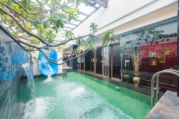 館內最豪華的房型就是這間「奢華悅河」,而其中最吸引人的設施就是房內居然有一座半層樓高的滑水道,總坪數約70坪,可容納50人左右,絕對是揪團開趴首選房型,甚至還有幼稚園老師包下這間,和幼童與家長一起歡樂開趴!