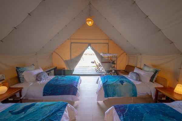 園區內設有許多豪華帳篷,除了親海及擁有獨特造型之外,從2人至4人通通有,還有海景第一排、視野極佳的海上屋納海木屋帳,非常具有異國風情!