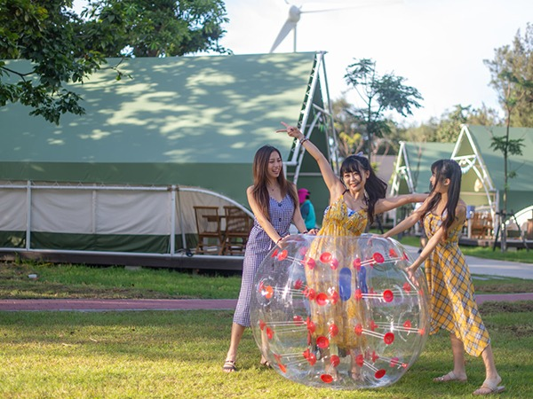 園區內有片草皮活動區,可以讓大人小孩盡情玩耍奔跑,不論是泡泡足球、射箭、大地團康、營火晚會等等,都能在園區舒適安全的玩樂!