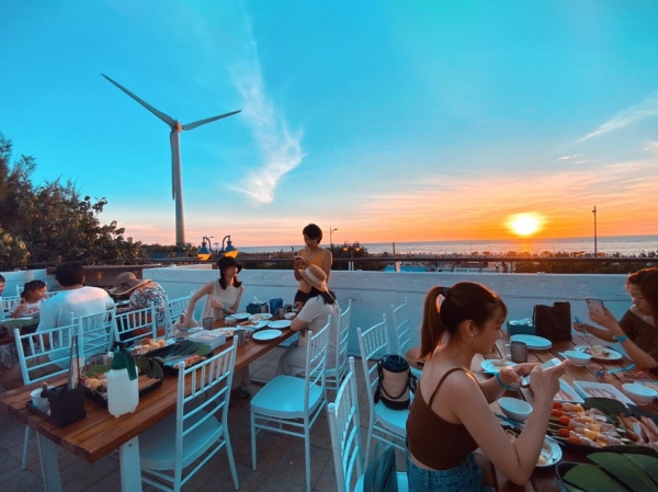 這座海景餐廳提供了早午餐、下午茶及晚餐,想要吃火鍋、戶外BBQ、海鮮及buffet通通有,在這無邊際的晚霞下烤肉,一邊吹著海風、一邊欣賞海景也太浪漫了吧!