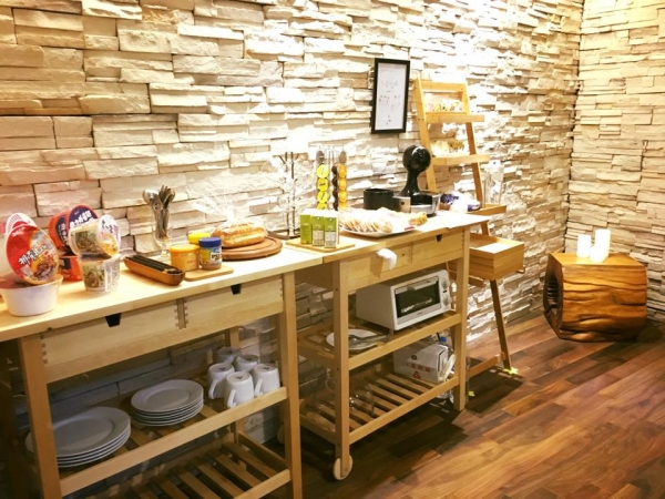 一間具有設計風格的民宿,以空間和分享出發, 提供旅客自在放鬆的賞景空間,從房內大片落地窗看出去就是無敵山海景,有夠療癒!另外還有提供24小時點心吧,滿足夜晚嘴饞又不想出門的窘境,泡麵吧加上膠囊咖啡機任你使用,貼心服務超讚!