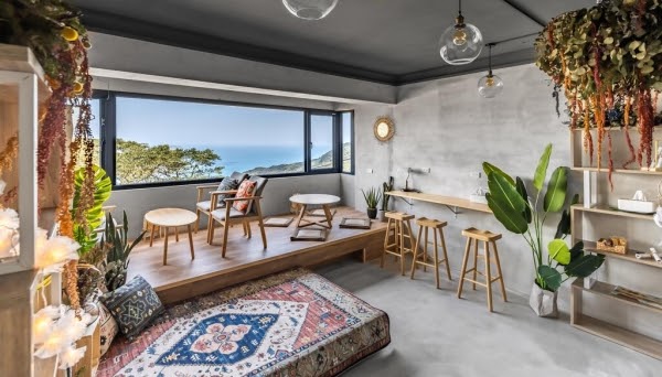 堪稱網美級民宿,以清水模混搭乾燥花為設計,其二、三樓的公共空間還能看到無敵海景,根本超幸福啊!
