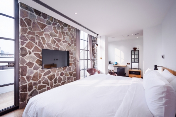 手工打造的牛皮沙發,斑駁的水泥牆磚,粗曠的天花板;讓現代主義靈魂貫穿的宿泊新體驗。也是唯一一間衛浴設備有浴缸的房型,寬廣的住宿空間,舒適又享受!