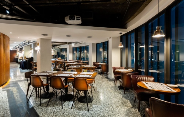 位於三樓的藍天美饌餐廳,備有健康的中西式早餐,用餐時倚窗閑望,採工業都會風格設計,擁有大面採光落地窗。車水馬龍的繁忙街景映入眼簾,彷彿坐落於都市叢林中的獨立天地,體驗遠離塵囂的靜謐享受,讓您盡情品嘗每一次的味蕾饗宴。