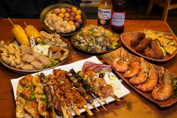 串烤部分個人很喜歡泡菜燒肉串,爽口又好吃!還有我的最愛烤肥腸、香腸、雞皮也超好吃,喜歡串燒的醬汁!甜片串有點像是薄片的黑輪/天婦羅,那個口感跟味道越嚼越香!
