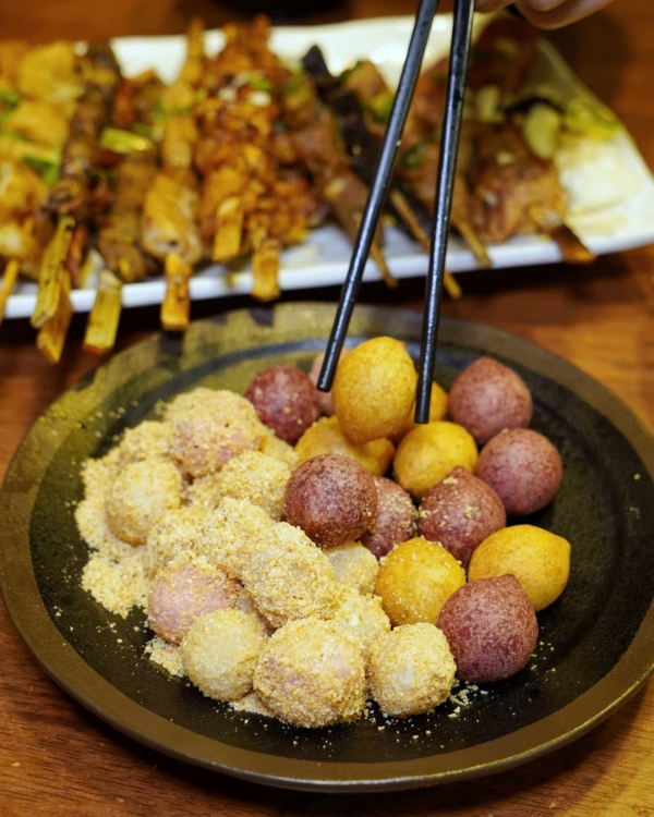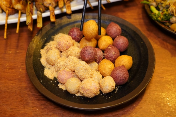 雙色地瓜球、炸湯圓,這兩道現在很夯,雙色地瓜球還有包餡,小心燙口!
