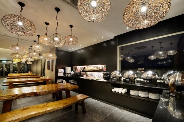 用餐區也充滿著濃濃的度假氛圍,大片落地窗設計搭配竹製吊燈、原木桌椅,根本置身在國外啊!