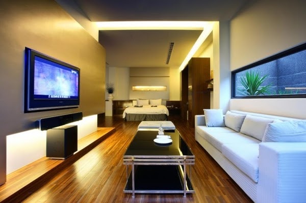 木質地板讓人感到溫暖放鬆,加上絢麗的紫色燈光作陪襯,超級浪漫!