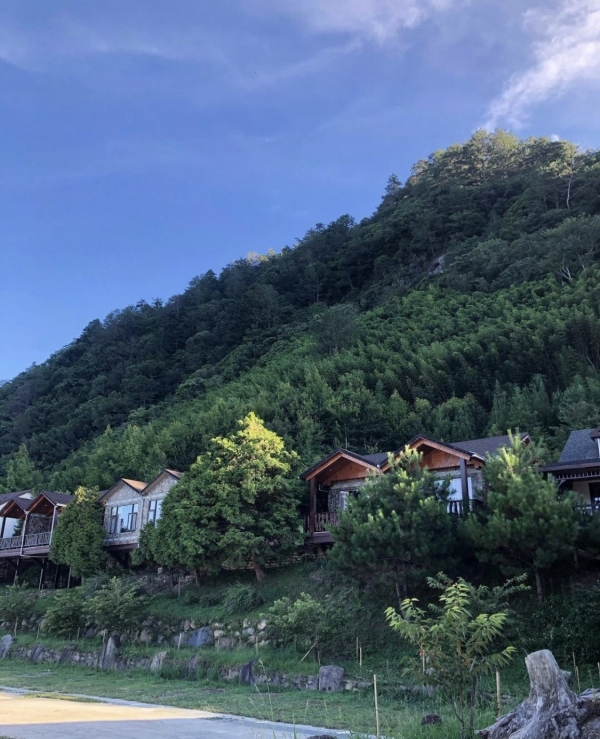 大片的落地窗也能直接欣賞到壯麗的山景,相較於迦南小木屋多了露臺可以更親近大自然!