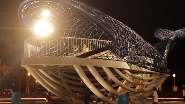 最後了最後!正式安平的夜晚新景點,大魚的祝福,在充滿涼意的秋天下船後慢慢散步過去,真的是相當舒服,大魚的祝福,簡單的景點,但卻有非常多的人一起來熱鬧,伴隨著街頭藝人的歌聲以及小孩子晚鬧的聲音,想想~實在是太棒了,這正是旅程中最完美的句點呢!