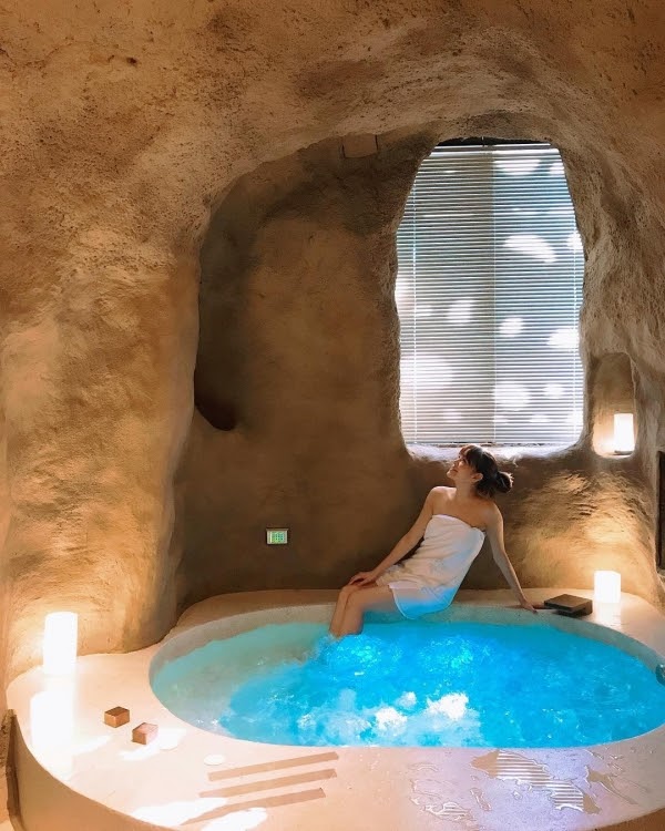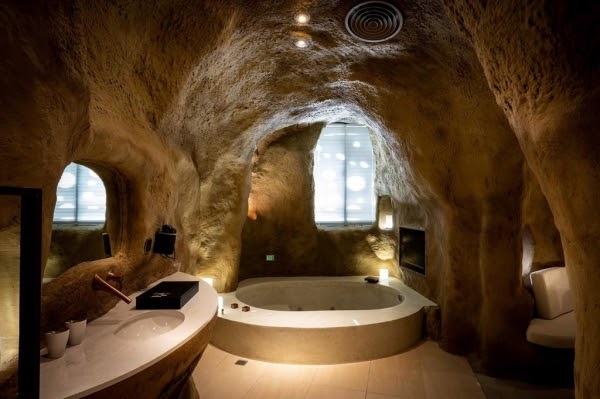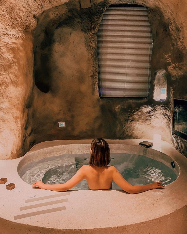 雖然是打著原始洞穴的名稱,但備品可是相當齊全呢,電視、冰箱、衛浴空間等等通通有,還能在洞穴裡享受泡湯樂趣,沒有真的要旅客當原始人啦!