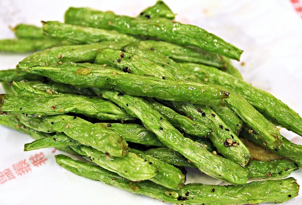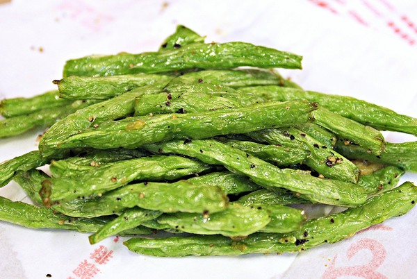 油炸四季豆加入濃郁香氣黑胡椒粒調味 可謂是下酒良伴啊