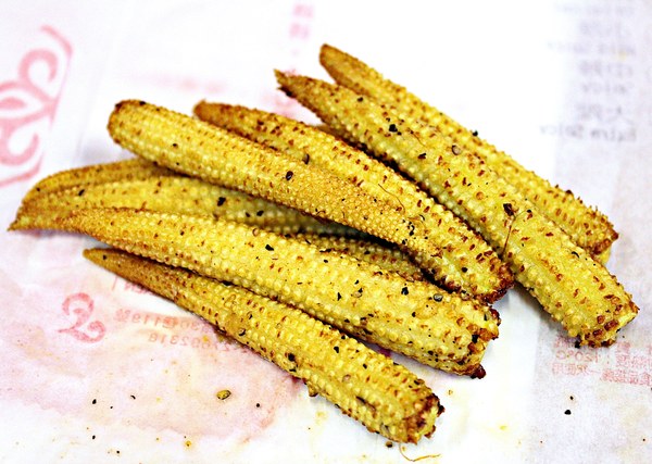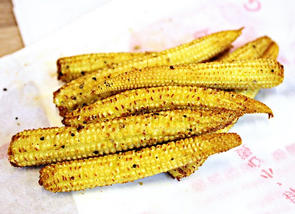 嬌嫩的玉米筍經過油炸依舊保留水分