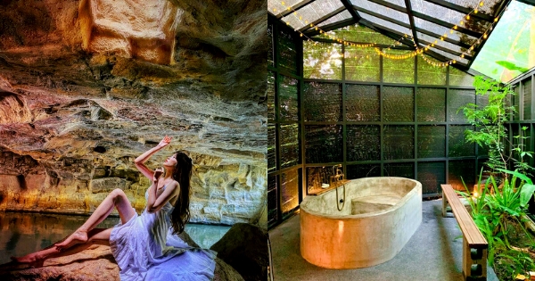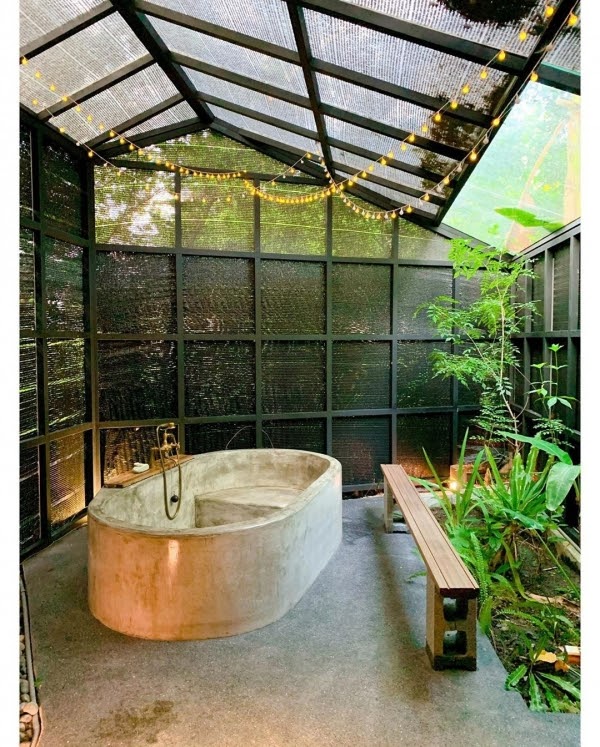 最吸睛的就是他們的森林浴,沿著原本的地貌,所打造的泡湯空間,周遭植物環繞,綠意盎然,還用燈串裝飾,而浴缸是用手工的磨石打造,夜晚泡著美人湯邊賞景,真是享受!