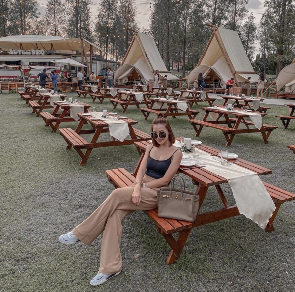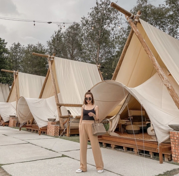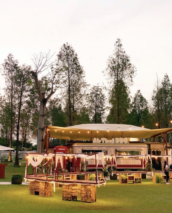 一整排的白色豪華帳棚,周圍還有落羽松環繞!眼前的一片大草地能夠悠閒的野餐,小朋友可以盡情的奔跑遊玩!夜晚的營火點燃伴隨著輕鬆的音樂超chill!用餐區以調酒跟餐酒館料理為主軸!也可以選擇在帳篷裡享用泰式料理,帳棚內還有冷氣在夏日裡完全不用擔心太熱!