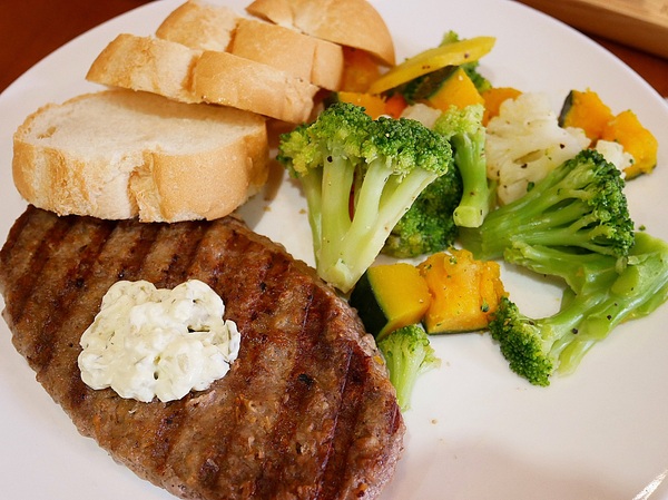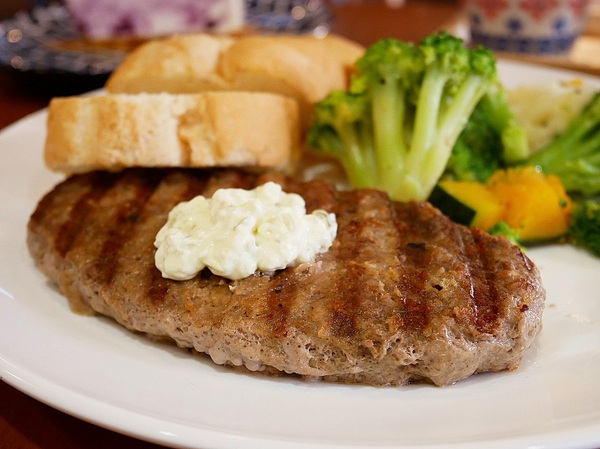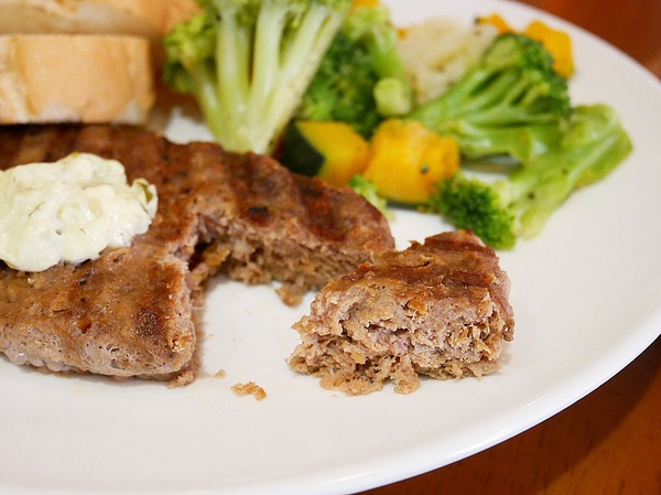 漢堡排吃起來不會太乾 即便稍有部位帶筋 但完全不影響口感
