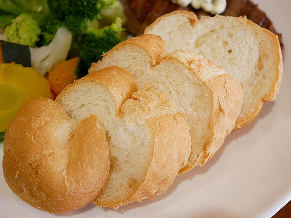 除了有綜合蔬菜 還有軟法切片跟一塊厚實的牛肉漢堡排