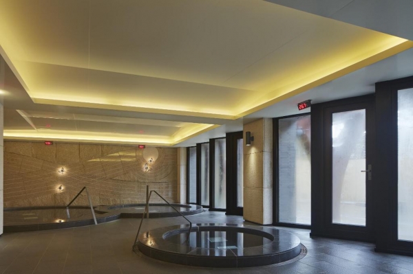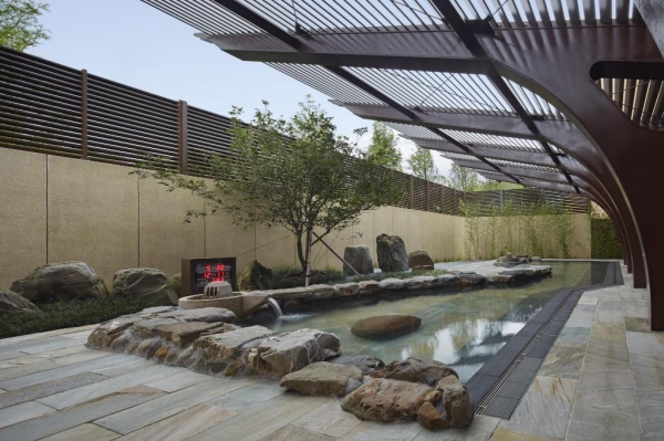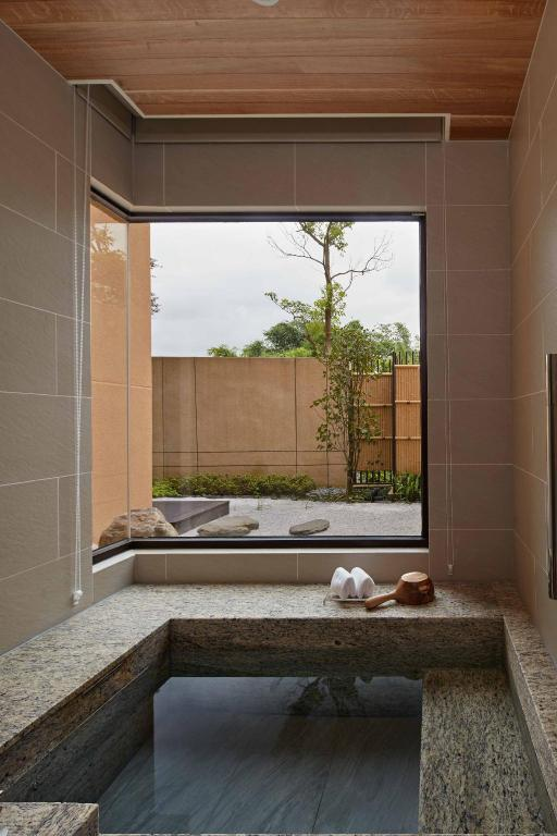 露天風呂雙邊湯池一方一圓、一黑一白,設有男湯池及女湯池,湯池設計分別為高溫池、中溫池、常溫池及戶外湯池。室內空間並設有烤箱、蒸氣室與休息區,空間寬敞、靜謐舒適,戶外風呂區則以落地窗臨分隔,視野遼闊,天然植栽與煙霧繚繞的迷人氛圍,感受最純淨的放鬆。