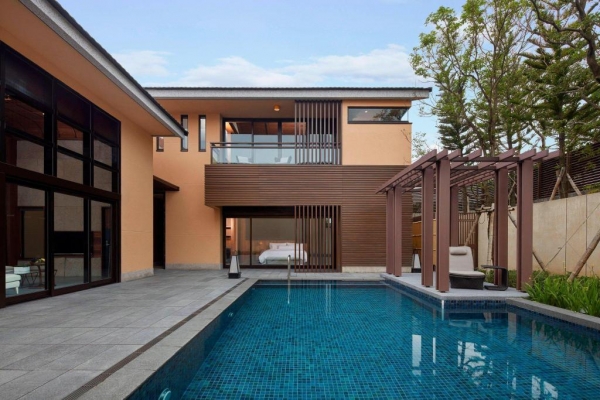 獨棟雙層的建築物,有著現代簡約白色及以東方禪風式的設計,透過自然的光源,搭配木質簡約設計傢俱與裝飾品,寬敞的客廳加上舒適皮製沙發,每間別墅有富含礦物質的碳酸氫鈉湯池與獨立泳池,相較於一般套房更具隱密性且自由度高。
