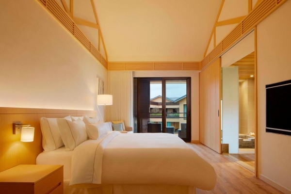 位於酒店角隅,半開放式的蜜月套房空間有明亮淺色調設計風格,讓視野更加寬闊,木質傢俱呈現禪意建築風格,舒緩色調與自然的光源延續Westin品牌精神,讓每位賓客感受放鬆身心靈的絕妙感受,重新煥新活力。
