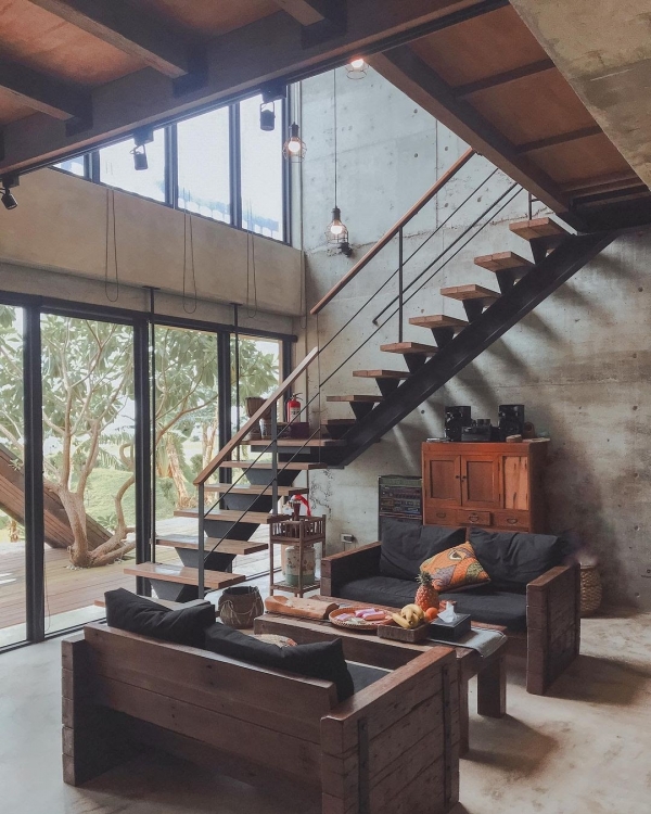 挑高的大廳採樓中樓設計,空間寬敞明亮又舒適,搭配全木質家具擺設,整個超有質感啊!戶外有個超大平台,還設置了小孩最愛的盪鞦韆,無論是家庭旅遊、好友度假都超適合,一群人包棟出遊絕對嗨翻天!