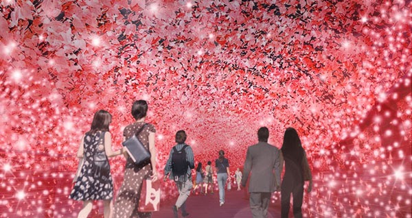 愛麗絲裡的妙妙貓也成為了超大型的裝置藝術,再加上夢幻燈是的點綴!