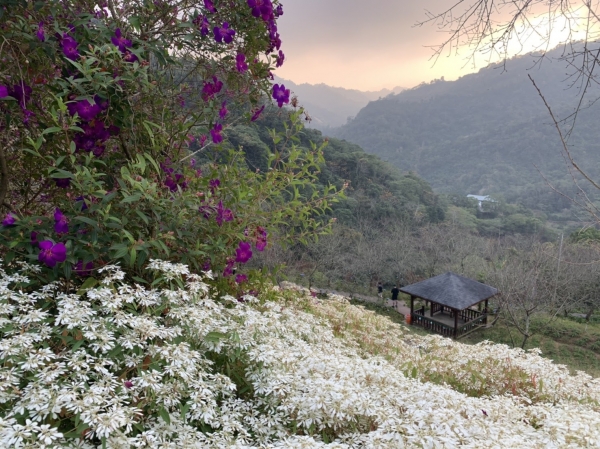 第三站是沐心泉休閒農場,從11月開始到12月,整個山頭都是雪白的一片花海!就像下雪一樣!黃金楓與白雪木交錯,還可以搶先看到繡球花,還有什麼比來沐心泉更浪漫的事嗎?