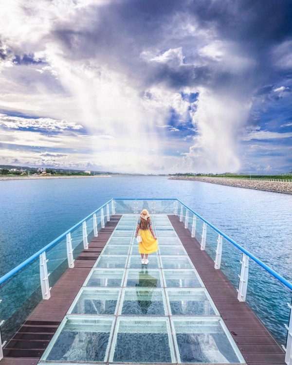 全台首座大型備援蓄水池、觀海透明步道就在這!水池進水口設有一座白色的透明棧道,在這邊不只可以遠眺山海美景,還是你挑戰自己的懼高能力最好地方!