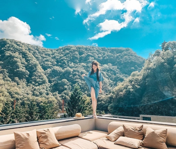 網美必拍的場景非這裡莫屬啦!ㄇ字型的沙發轉角處,絕對是IG上的打卡熱點,慵懶的沙發搭配壯闊的山林成對比!
