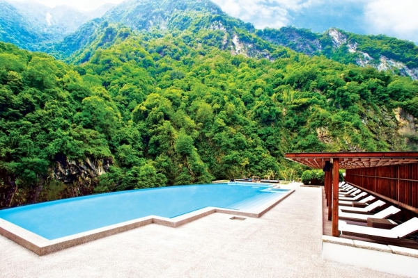 本飯店座落於中部東西橫貫公路之天祥地區,伴立霧溪貫穿其間,秀麗山色即是天然的藝術品,室內採現代中國風的設計風格,以山、水、石、木等元素作為妝點空間的點綴品,與大地共生共存共榮,營造低調、沉穩、高品味的渡假休閒氛圍。