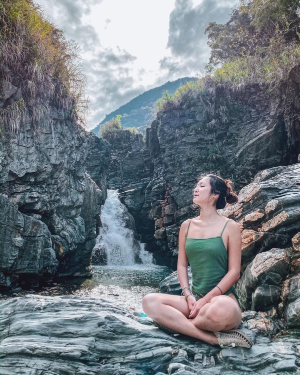 從溫泉區沿溪向上走約五分鐘的路程,還有一座秘境峽谷瀑布,因地層裂開所致而非河流長年侵蝕,地勢奇特加上彩色岩壁,有如秘境般的獨特樣貌!