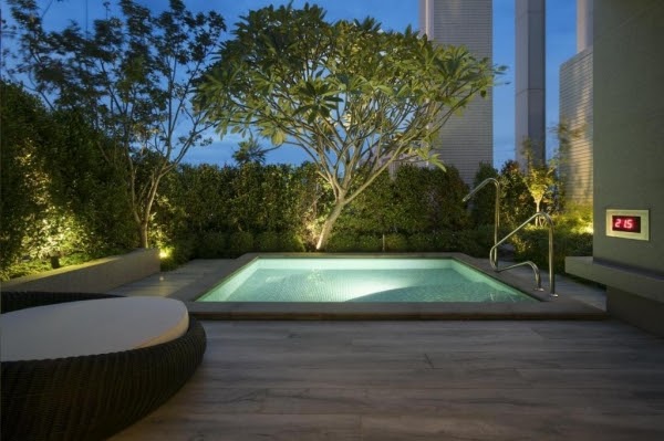 除了高空泳池,旁邊還有一處SPA湯池,只要預約,除了享受指定的 SPA 療程,同時還能有自己的浴缸、烤箱、蒸氣室以及戶外小泳池可使用,相當值得!
