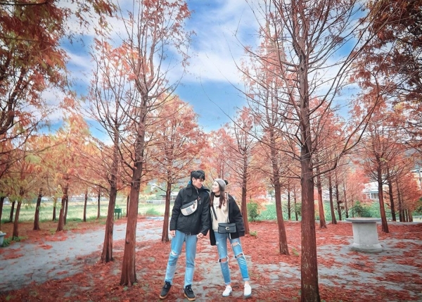 位於台中西屯區的廣興宮對面小巷子裡的中科落羽松,到了秋冬已經漸漸轉為暖黃與棕紅,而且這邊的主人還加裝了木棧道與柵欄,乍看之下還以為是在山林裡的水池中,大家還以為再偏鄉郊區的地方,其實就在市區內喔!